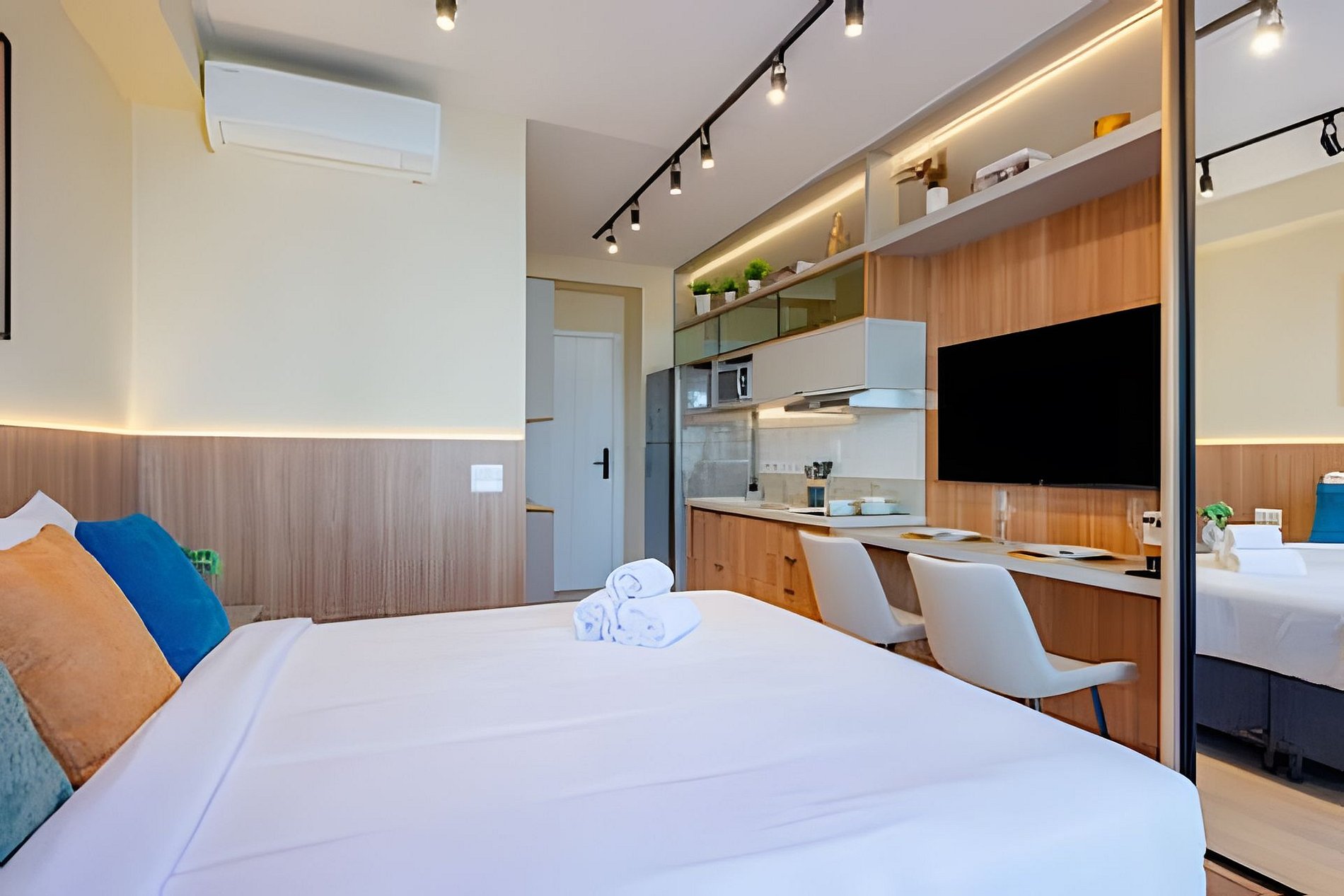 Apartamento completo com localização única, perfeito para terem uma excelente estadia sozinho, em casal ou amigos. Todos os detalhes pensados para seu conforto, segurança e aconchego. Chegue com as malas e se sinta em casa. Sobre o apartamento: -Cama Queen; -Internet Wi-fi 500 MB; -Cama/banho linha hoteleira inclusas; -Ar-condicionado 12.000; -Smart TV 50"; -Mesa para trabalho e refeições para 2 pessoas; -Cozinha completa com todos os utensílios necessários; Sobre o condomínio: -Portaria 24 horas; -Academia; -Lavanderia; -Piscina; -Pet Place; -Co-working; -Estacionamento ao lado; -Anfitrião a disposição 24/7.